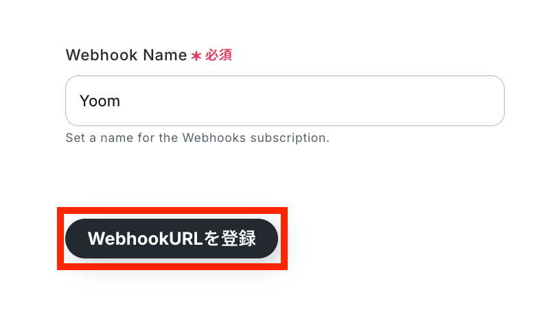 Webhookを登録します。任意のWebhook名を記入して赤枠をクリックしましょう!
