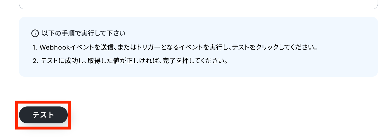 Yoomの設定に戻り、「テスト」ボタンを押しましょう!