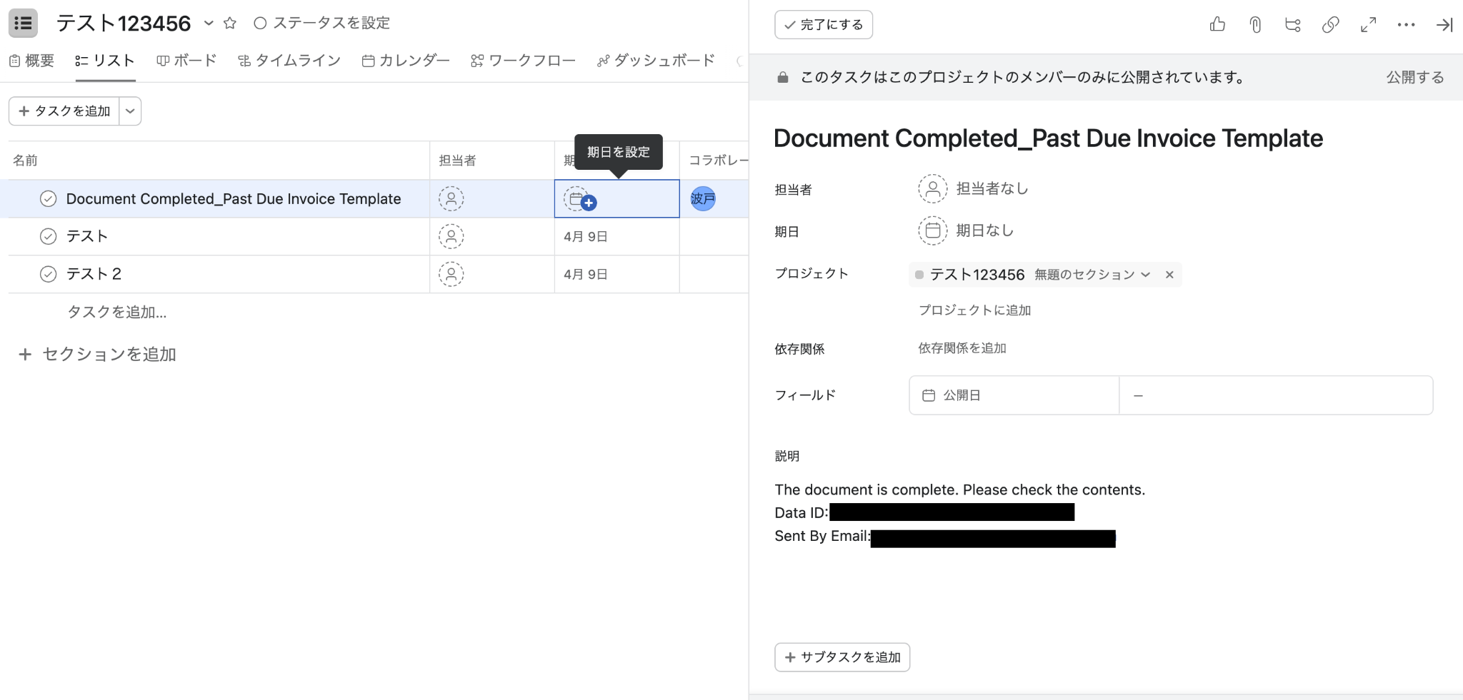 テスト成功で、Asana上に新しいタスクが追加されています。確認してみましょう!