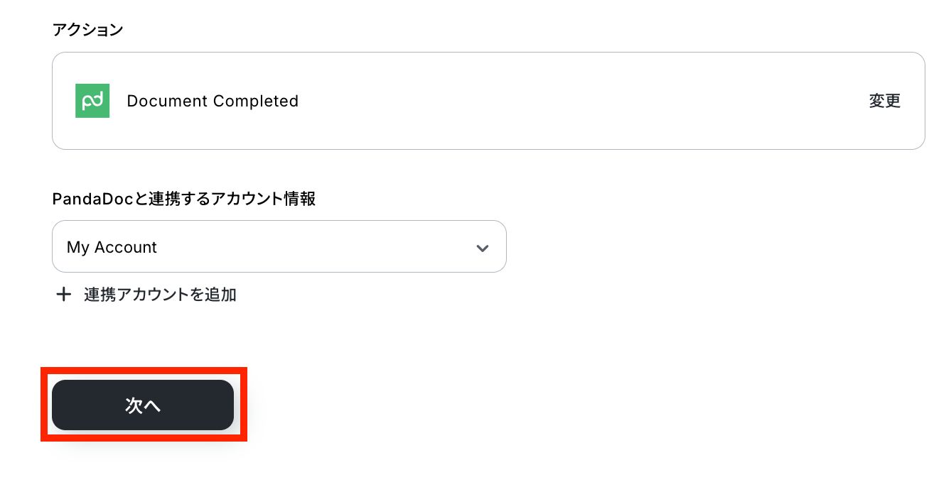 アクションは「Document Completed」のままで、アカウント情報を確認します!