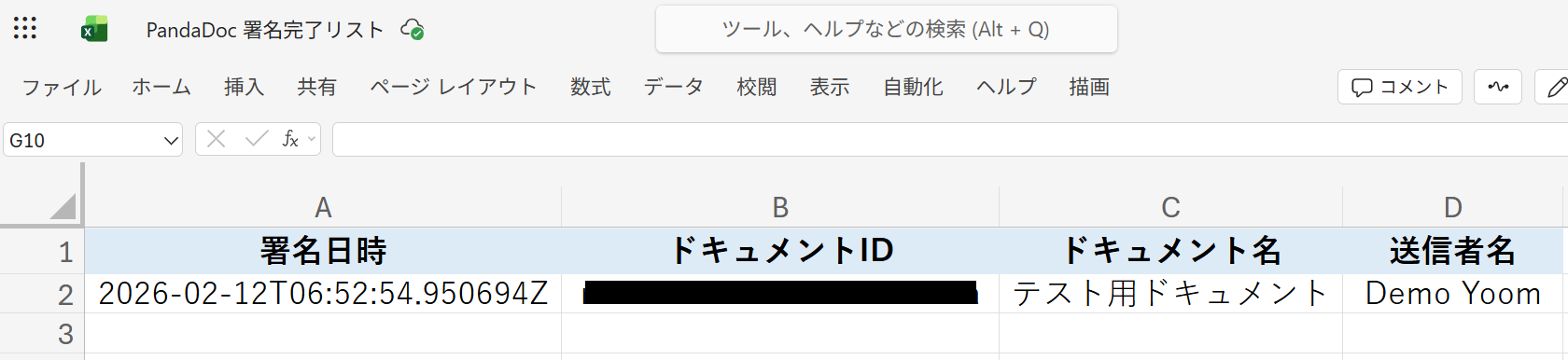 用意したシートに、PandaDocのドキュメント情報が記録されました!