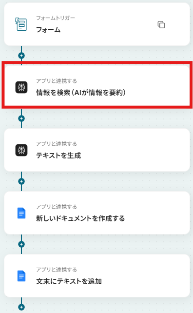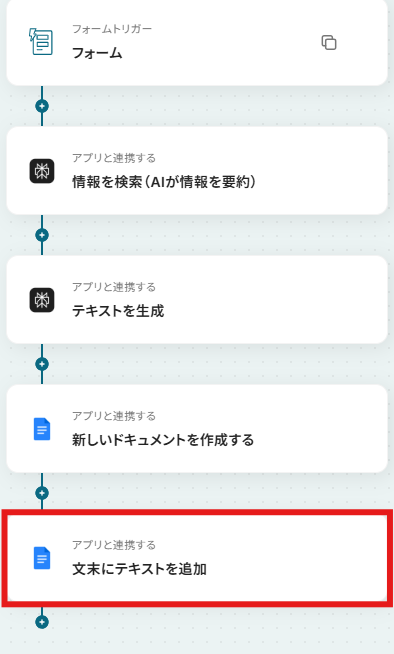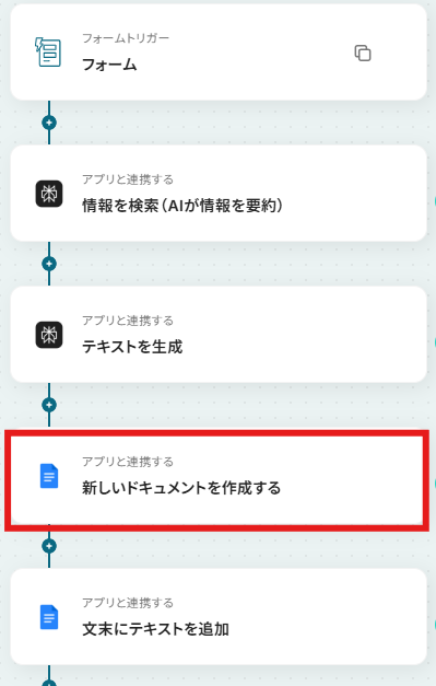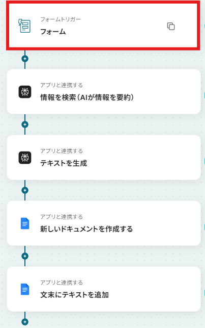 フローの作成方法 今回は「フォームから回答が送信されたら、Perplexityで解析し新規Googleドキュメントに結果を追加する」フローを作成していきます!
