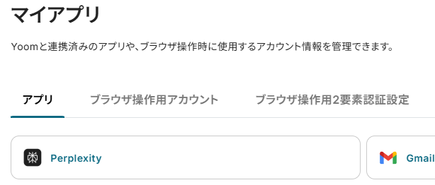 ステップ1:PerplexityとGoogle ドキュメントをマイアプリ連携 ここでは、Yoomとそれぞれのアプリを連携して、操作が行えるようにしていきます。