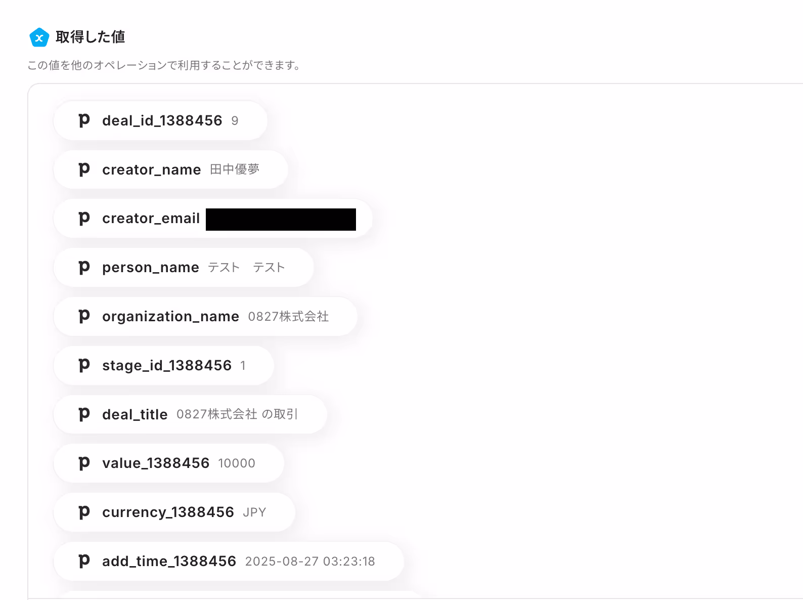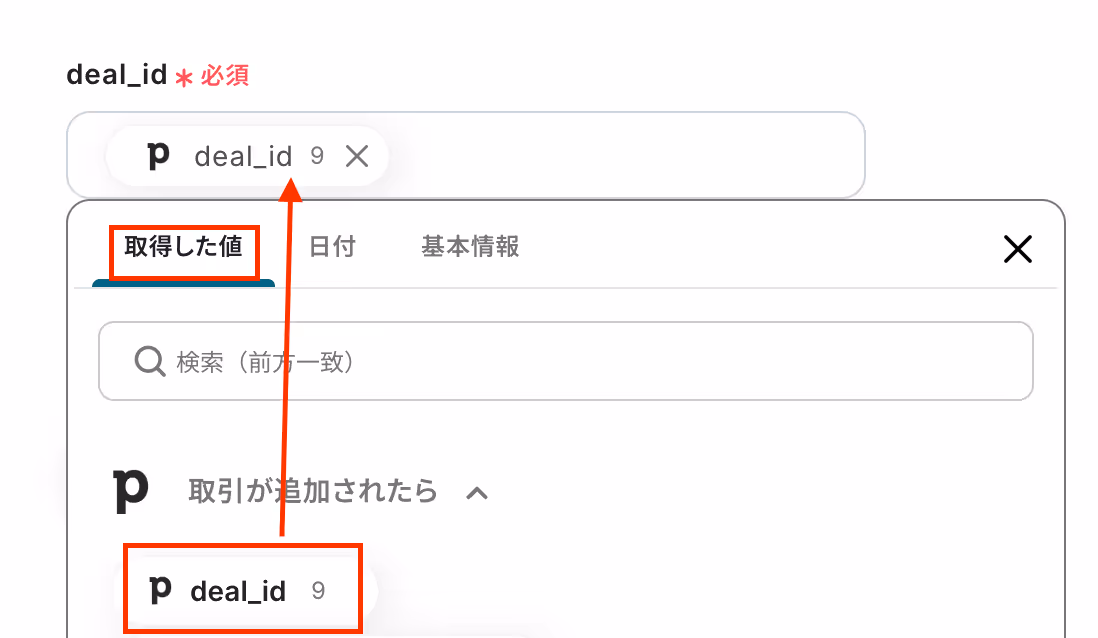 deal_idはPipedriveのトリガーの取得した値から選択してください。