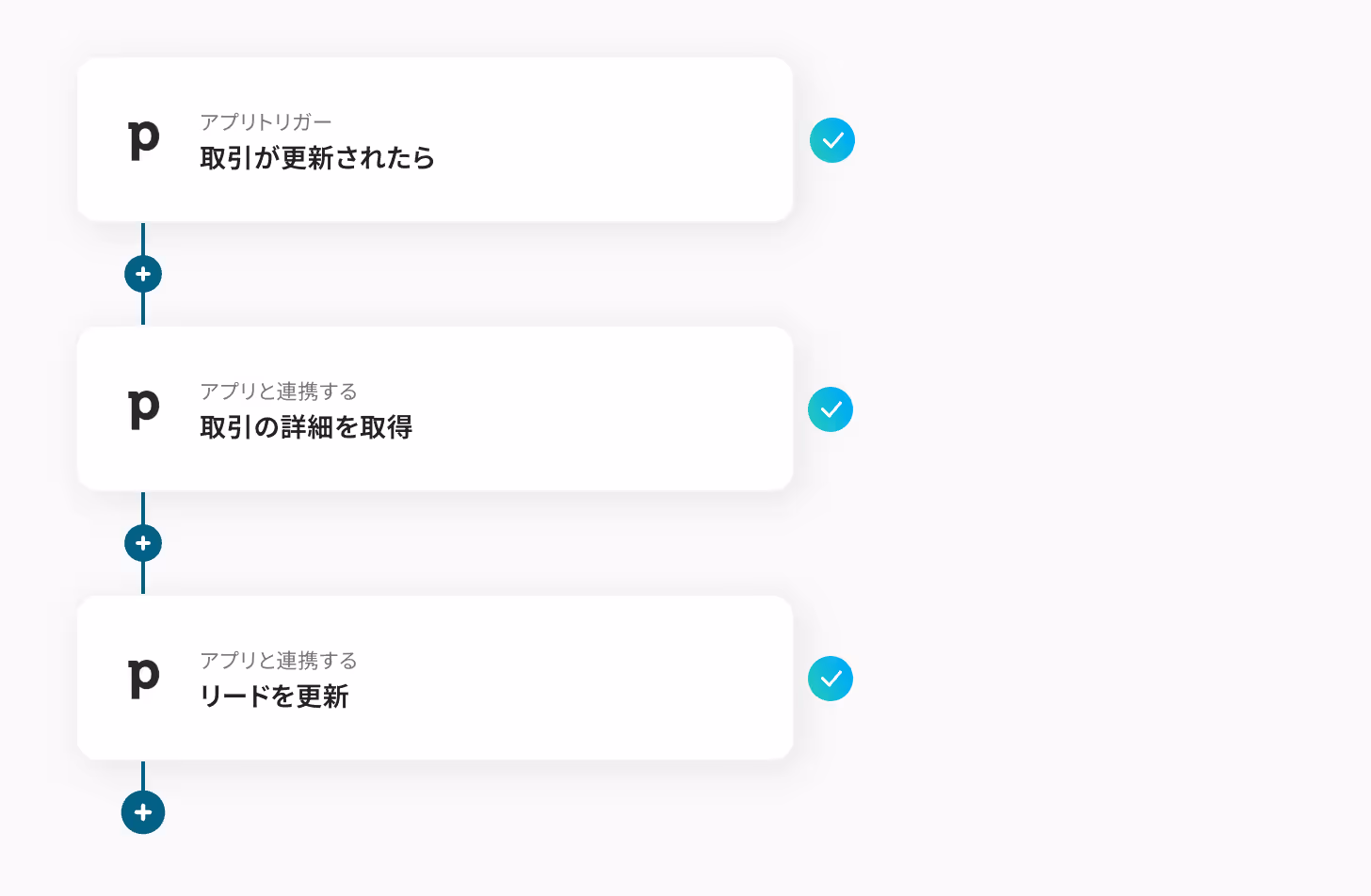 もし、<span class="mark-yellow">Pipedriveで新しい取引が追加された際に、自動的に関連するリード情報が作成・更新される仕組み</span>があれば、こうした定型的な作業から解放されるでしょう!