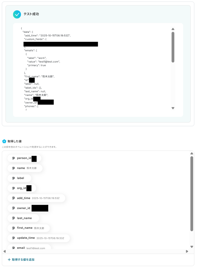 次に進んだら、Pipedriveでテスト用に人物を追加してください。