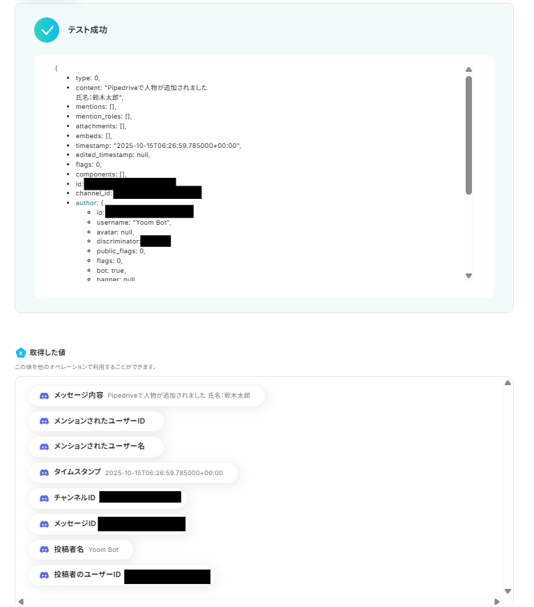 このワークフローを活用すれば、Pipedriveへの人物追加をトリガーとして、Discordへリアルタイムで自動通知することが可能です。