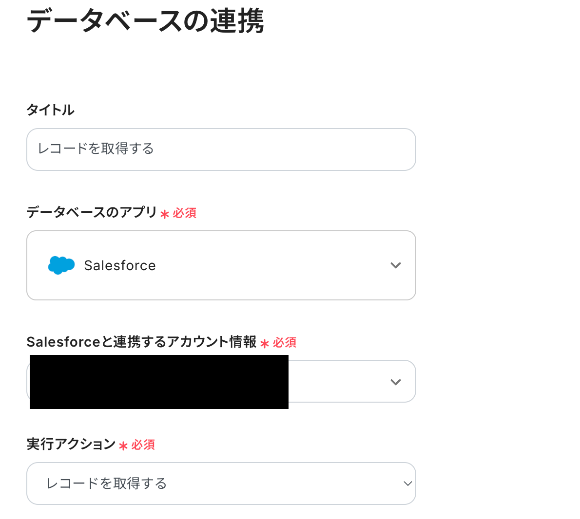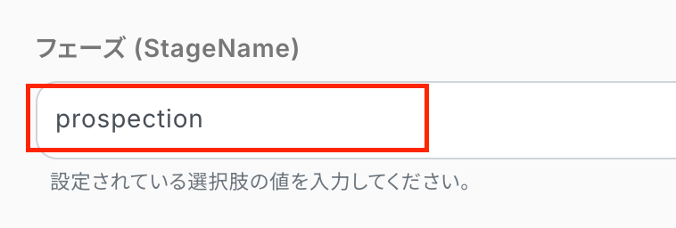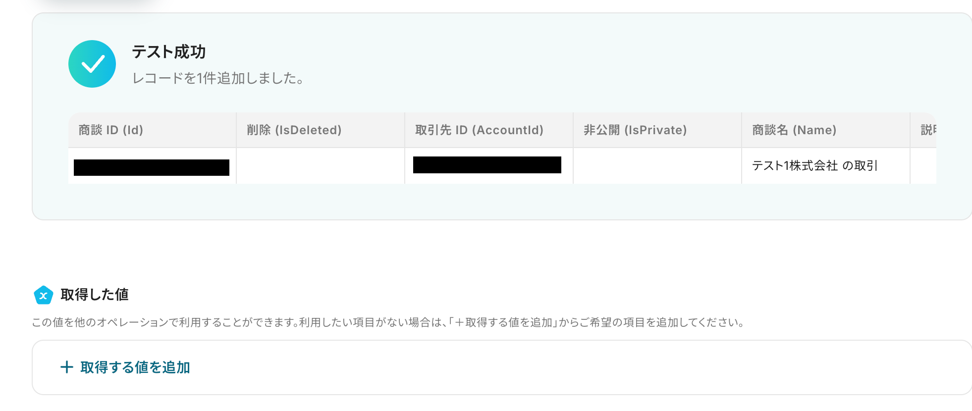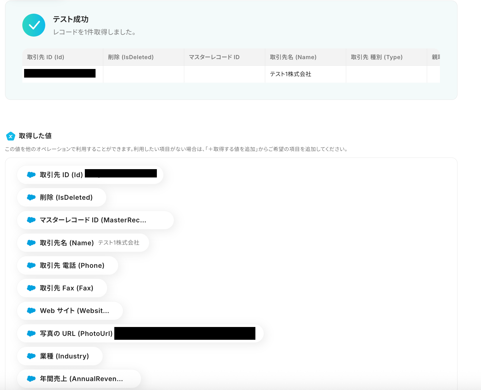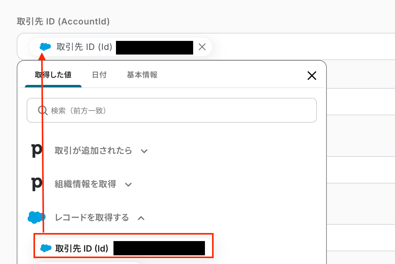 取引先IDはSalesforceの取得した値から選択してください。