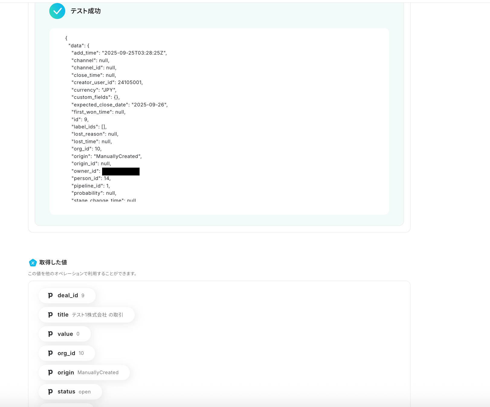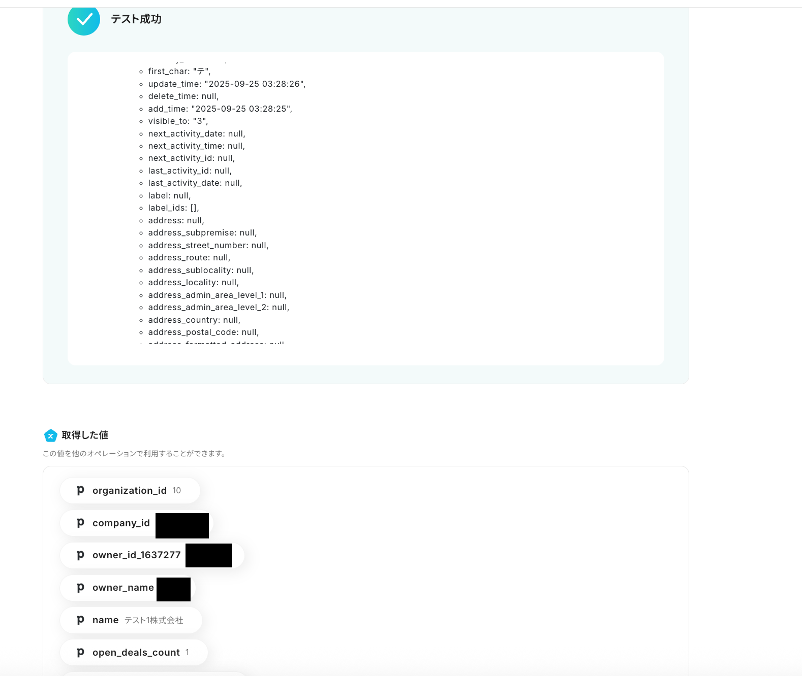 ここで取得した値を後続のオペレーションで使用します。