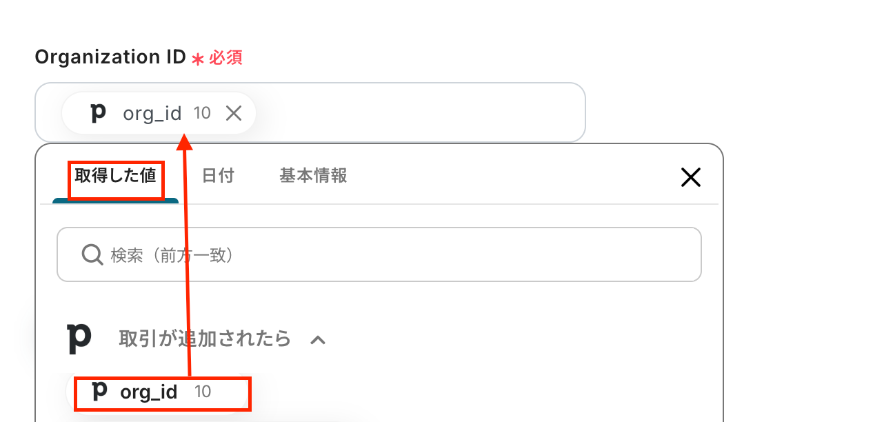 Organization IDはトリガーの取得した値から選択してください。