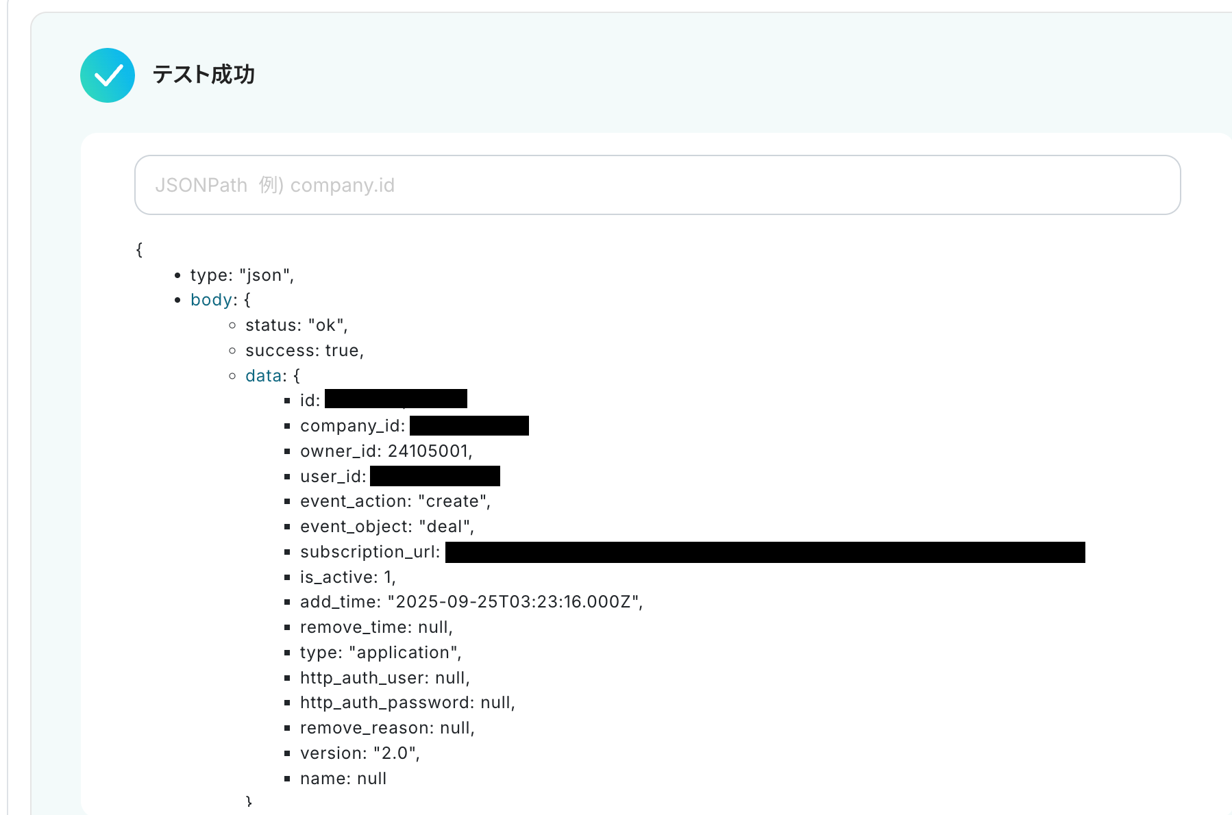 アプリトリガーのAPI接続設定の2ページ目に進んだら、Pipedriveに移動してトリガーを実行してください。