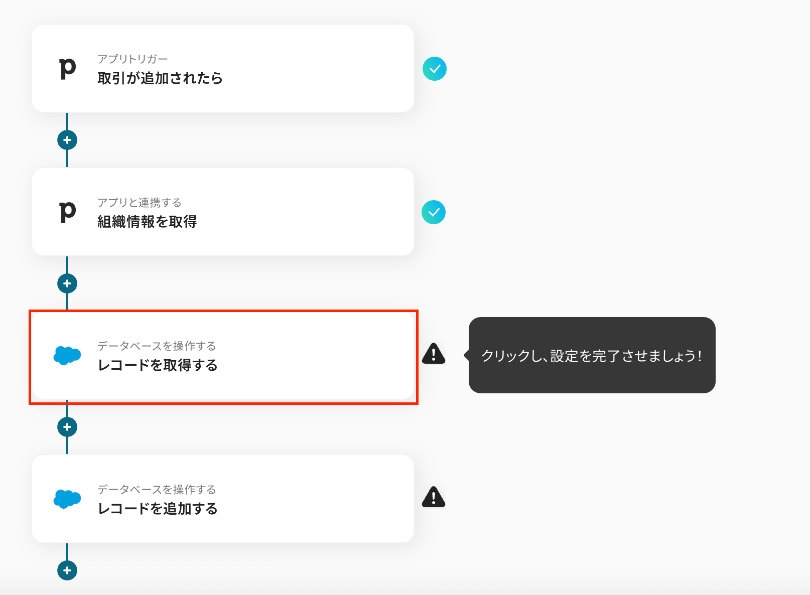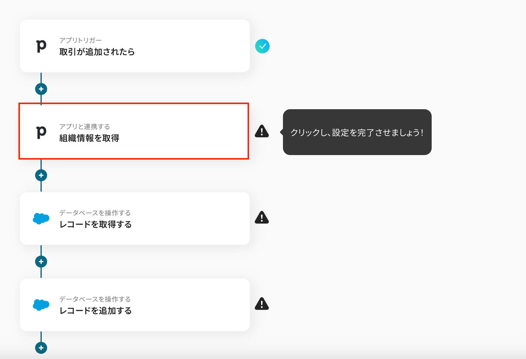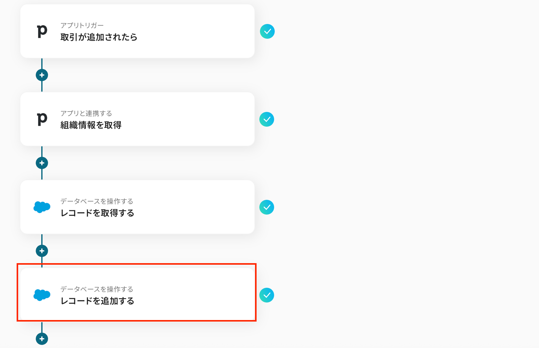 このワークフローを活用すれば、Pipedriveで新しい取引が追加されると、Salesforceに関連レコードが自動で登録されるため、このようなデータ連携に関する課題をスムーズに解消できます。
