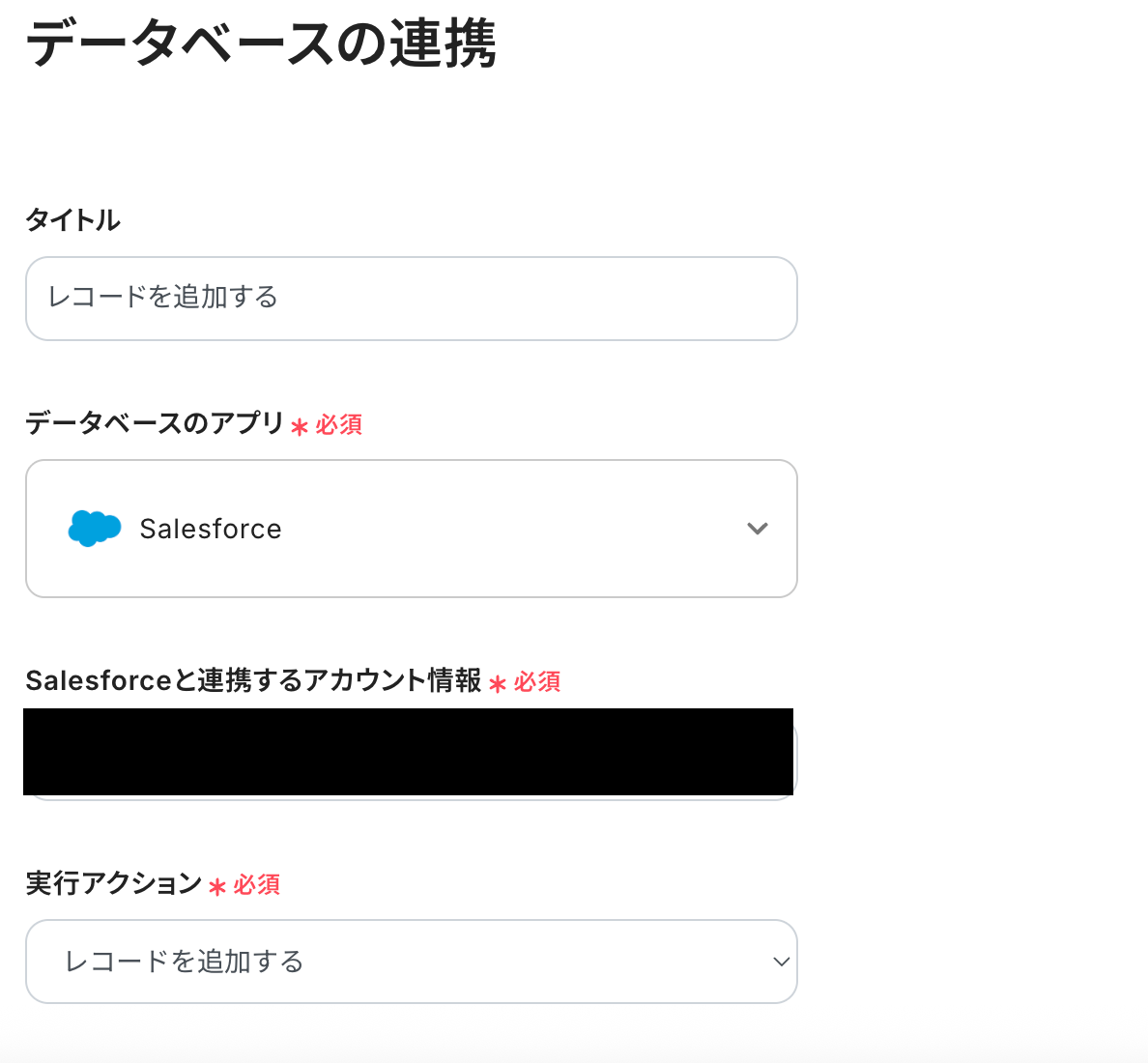 データベースを操作するオペレーションで、レコード追加や更新を行う際は、Salesforceの入力形式に沿って設定してください。