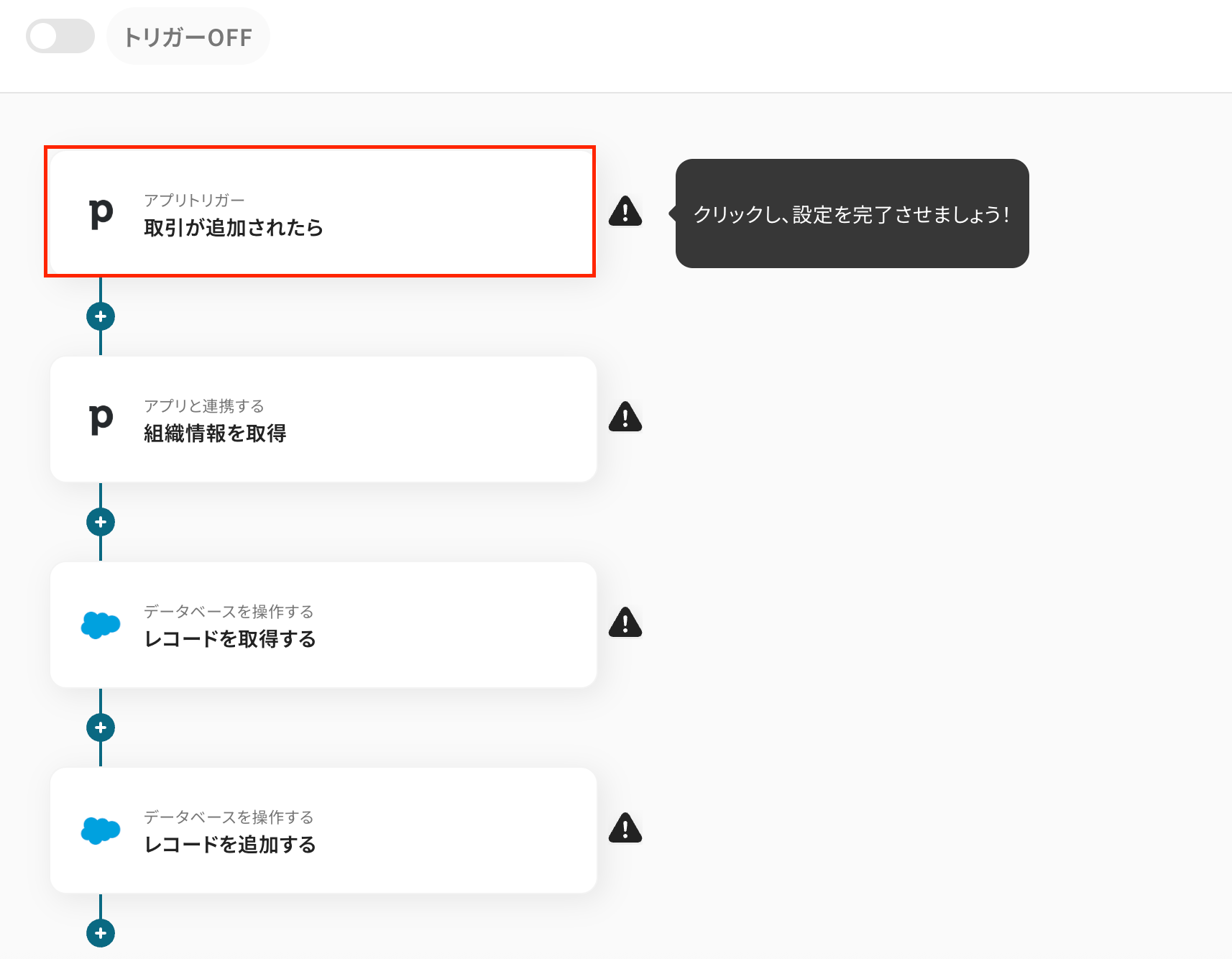 それでは、さっそく実際にPipedriveとSalesforceを連携したフローを作成してみましょう!