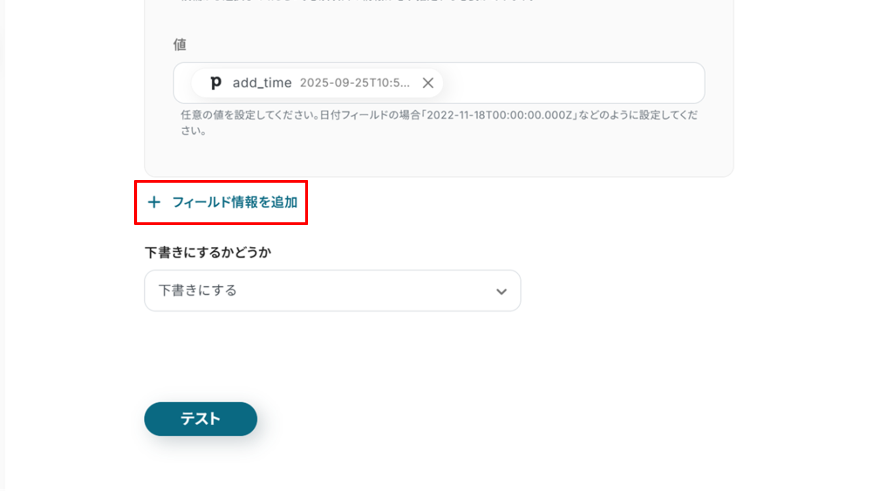 下へ進み、フィールド情報を入力します。