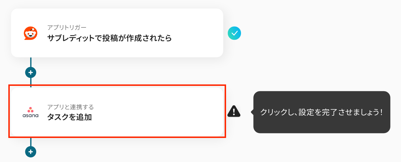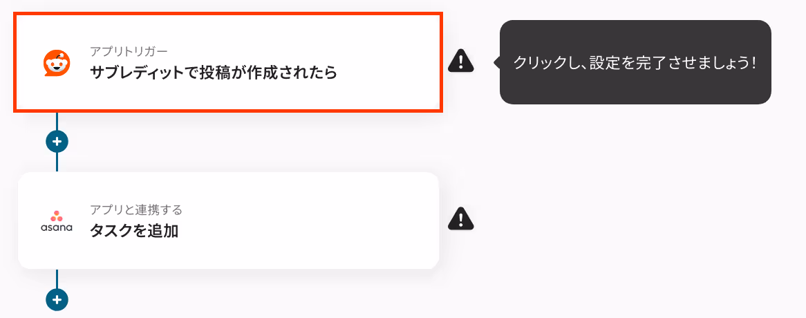 ここから「Redditのサブレディットで投稿が作成されたら、Asanaにタスクを追加する」フローの設定をしていきます!