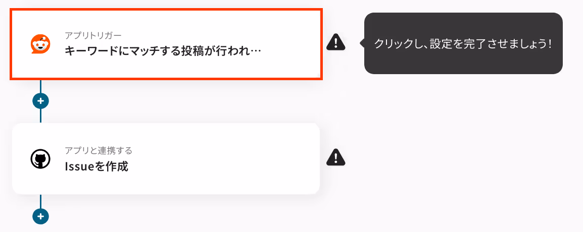 ここから「Redditでキーワードにマッチする投稿が行われたら、GitHubにIssueを作成する」フローの設定をしていきます!