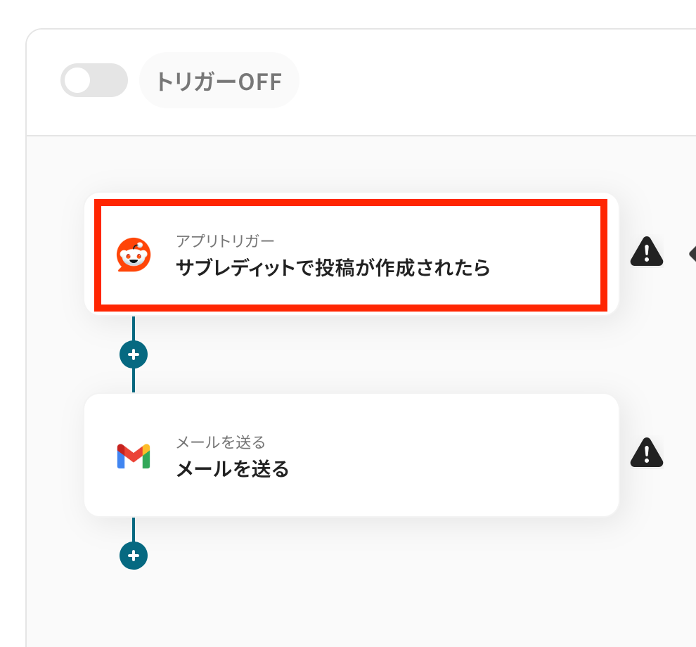 - Redditのトリガー設定およびGmailのアクション設定