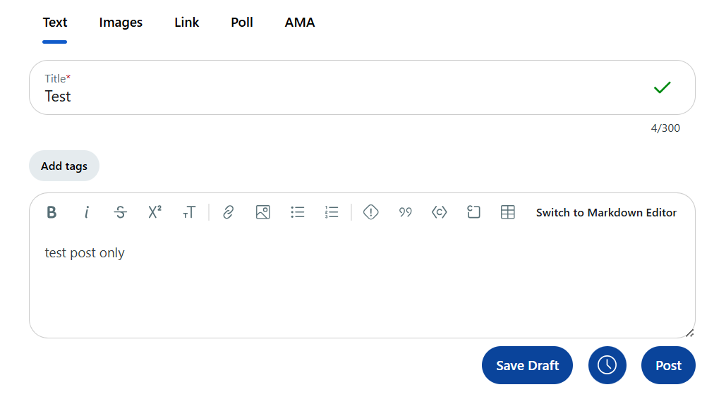 設定が終わったら、テストでサブレディットに投稿しましょう。