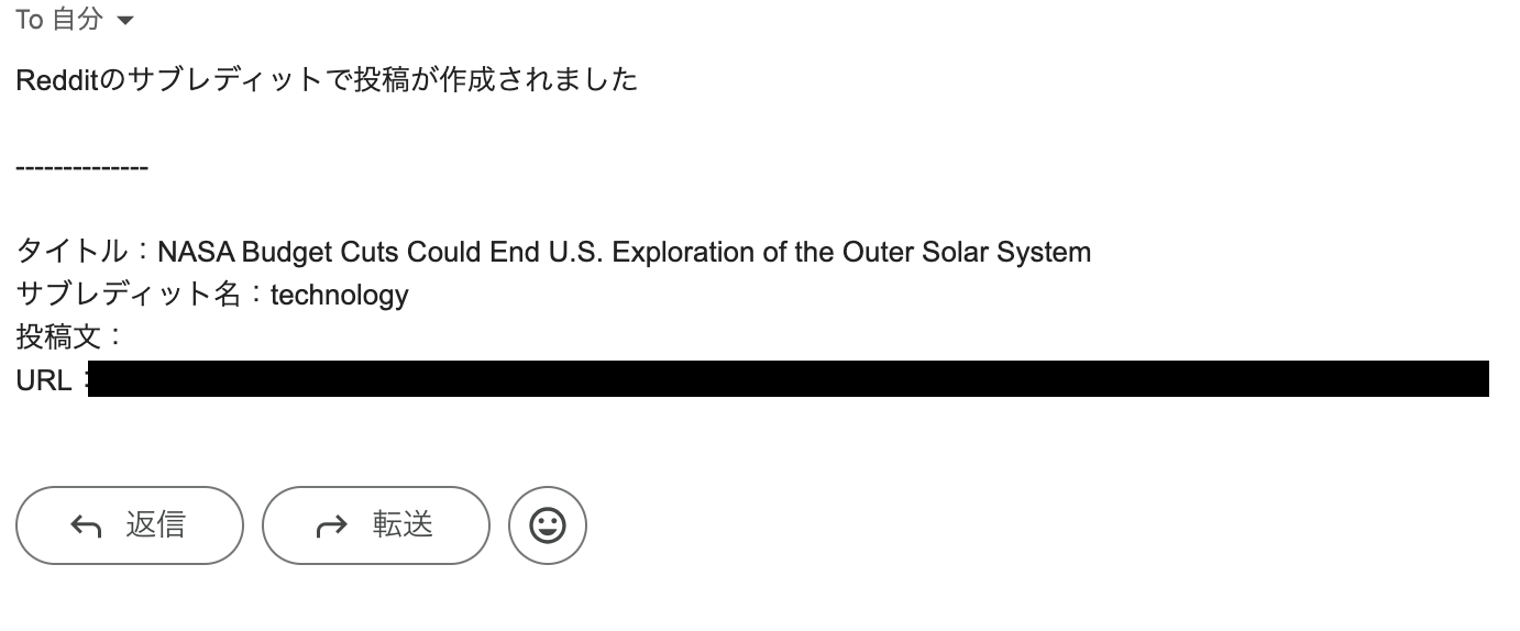 Redditのサブレディットで投稿が作成されたらGmailに通知する