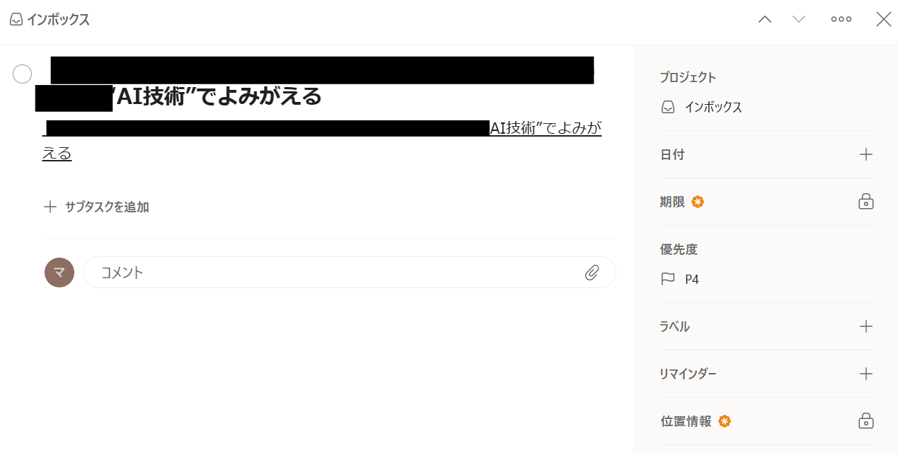 Todoistも見に行き、以下のように該当のタスクが追加されているか確認してください。