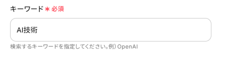 「キーワード」に文言を入れると、キーワードにマッチする投稿を感知してくれます。今回は「AI技術」としました。