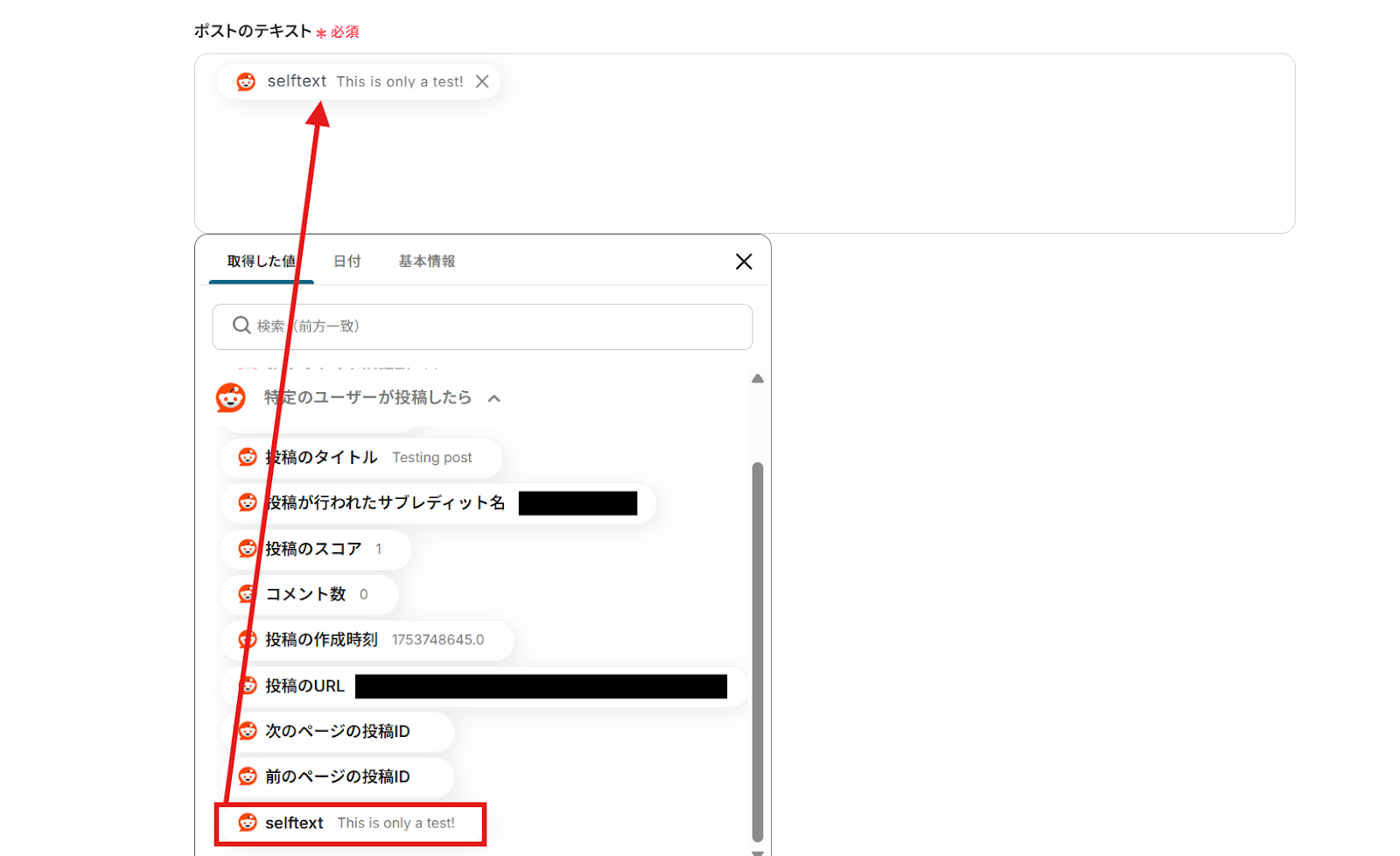・RedditのアウトプットはJSONPathから取得可能です。取得方法は下記をご参照ください。
