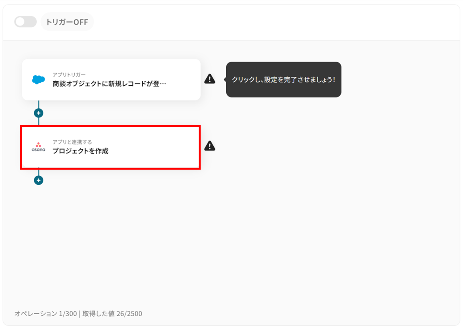 - アプリトリガー、Asanaと連携してプロジェクトを作成する