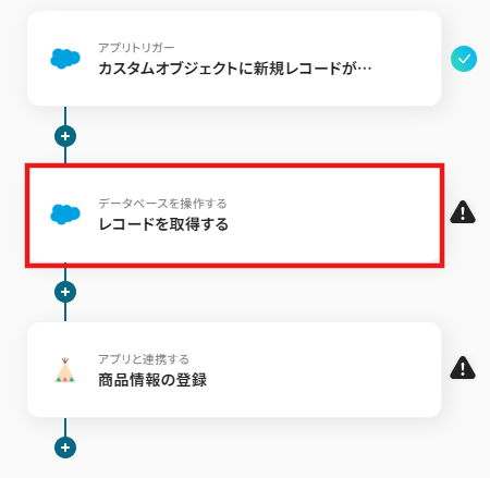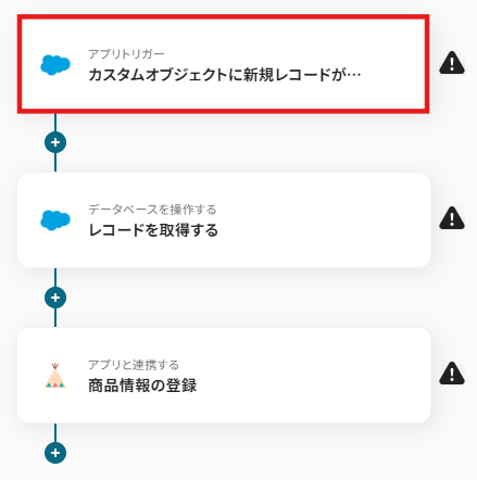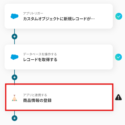 「Salesforceのカスタムオブジェクトにレコードが追加されたら、BASEに商品情報を登録する」ワークフローは、Salesforceの新規レコード追加時に自動で商品情報を管理ツールへ登録します。