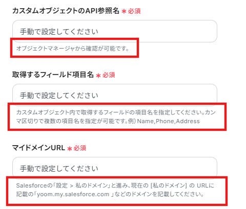 ・「オブジェクトのAPI参照名」はマイドメインURLを設定した後で選択できます!