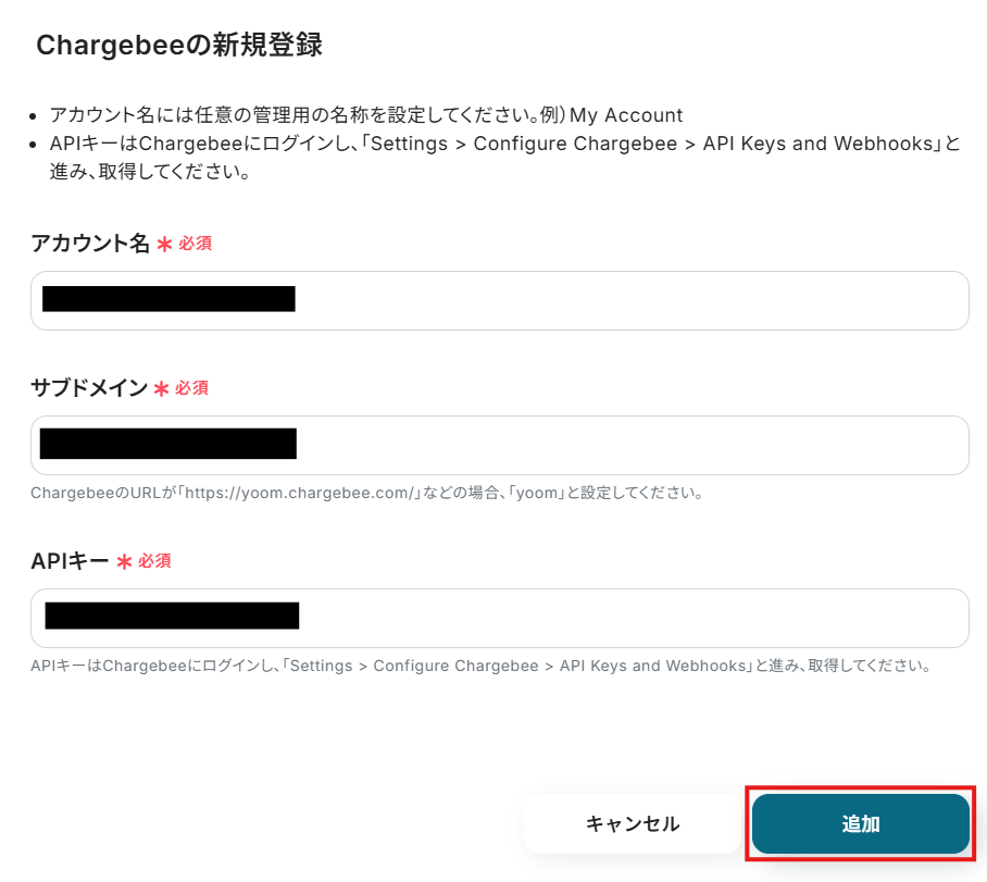 ChargebeeとYoomのマイアプリ登録