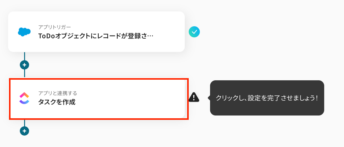 続いて、Salesforceに登録されたレコードの情報を基に、ClickUpにタスクを自動作成する設定を行います。