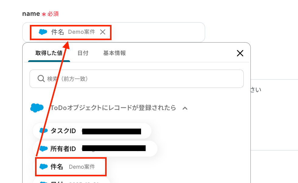 テストなので、「Demo案件」や「連携テスト」などの架空の情報でOKです!