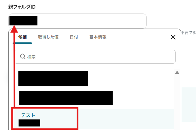 紐づけたい親フォルダがあれば、編集欄をクリックし候補から選択します。