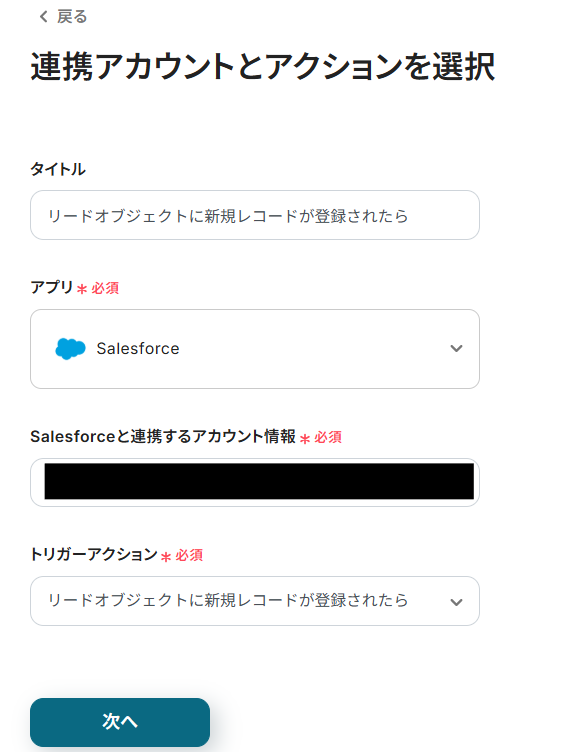 編集欄をクリックし、「リードオブジェクトに新規レコードが登録されたら」から、Salesforceに登録したリードの情報を引用できます!