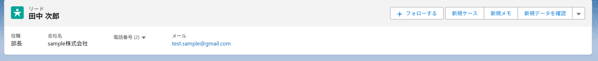 ステップ3:アプリトリガーの設定 Salesforceと連携して、リードオブジェクトに新規レコードが登録された際の設定を行います! Yoomで設定する前にSalesforceにテスト用のリードを作成しておきましょう。 作成が終わったらYoomに戻ります。