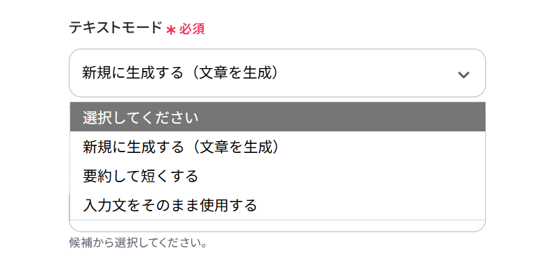 下へ進み、「テキストモード」はプルダウンから任意で選択します。