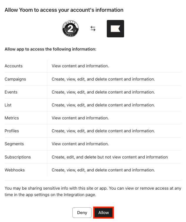 以下の画面が表示されたら、内容を確認し「Allow」をクリックします。