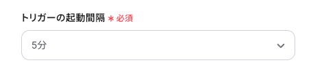 トリガーの起動タイミングは、5分、10分、15分、30分、60分のいずれかで設定できます。