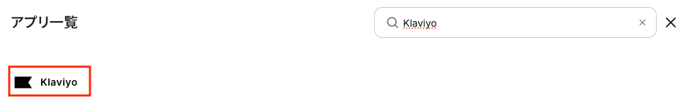 新規接続を押したあと、アプリのメニュー一覧が表示されるのでKlaviyoと検索し対象アプリをクリックしてください。