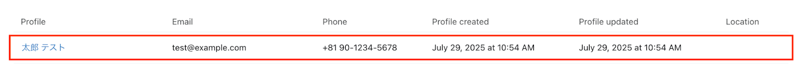 Klaviyoの画面を開き、指定した内容でプロフィールが実際に作成されているかを確認してみましょう。