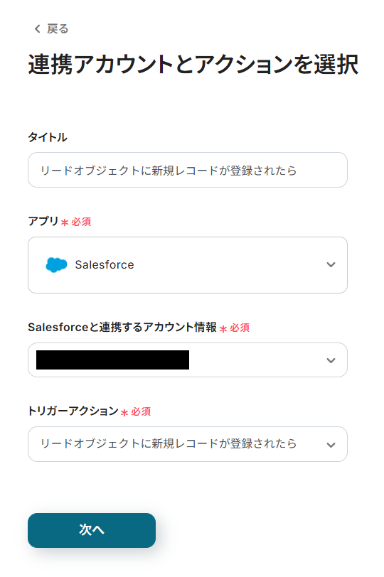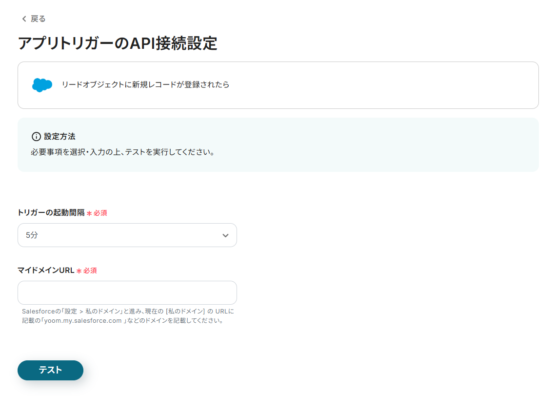 ここで設定した時間間隔ごとに1度、Salesforceでリードが登録されたかを確認します。