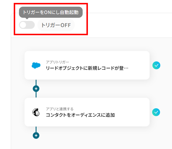 - Salesforceのトリガー設定およびMailchimpのアクション設定