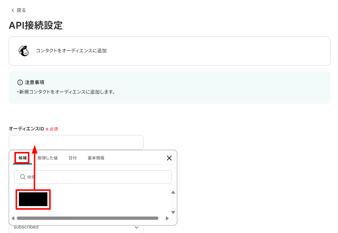 ステップ4:Mailchimpのオーディエンスにコンタクトを追加する設定