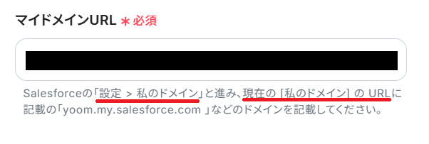 「マイドメインURL」は、Salesforceにログインして設定画面から抽出し、ペーストしてください。