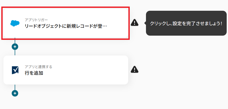これでアプリトリガーを動かす条件である「リードオブジェクトに新規レコードが登録されたら」という条件を満たせます。
