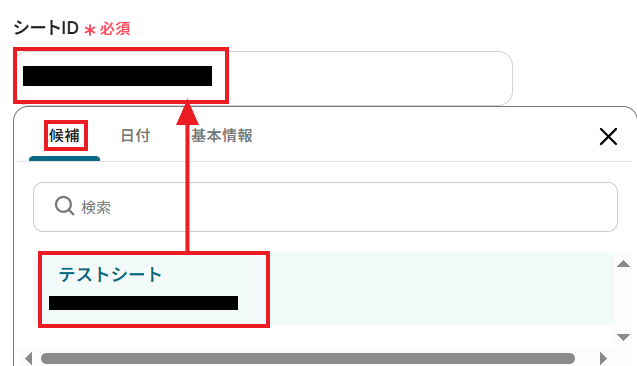 「シートID」には、候補として表示されるSmartsheetのシートから任意のものを選びます。