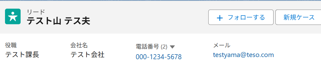 マイドメインURLを設定できたら、ここでSalesforceにアクセスし、テスト用に新規レコードを追加しておきましょう。