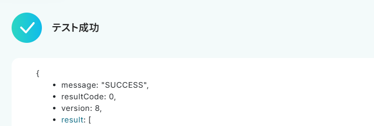 また、オペレーション設定時の「テスト」ボタンでもエラーがあれば内容が表示されます。