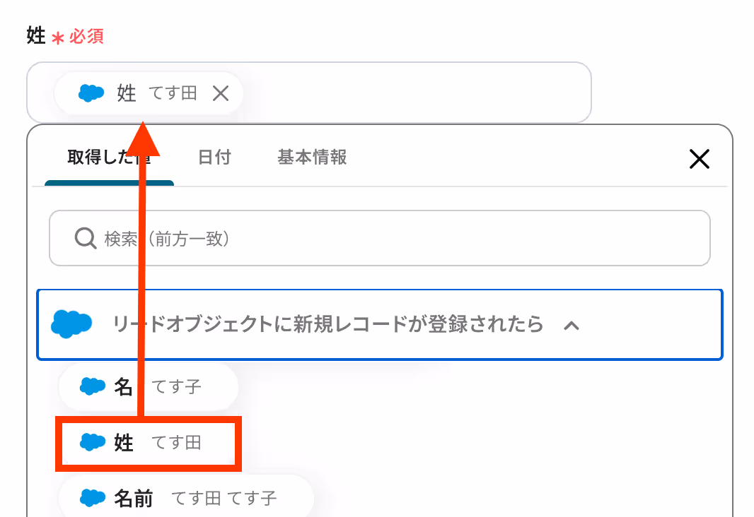 Salesforceから取得した値を利用して、Squareに顧客情報を登録する設定を行います。